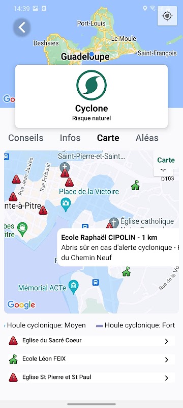 - Accédez aux rubriques d'aléa selon votre position GPS, avec des consignes, des actualités et des archives.