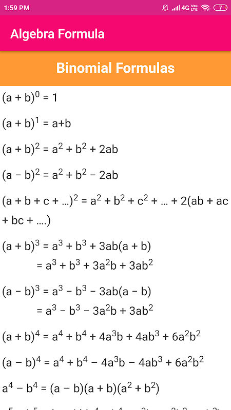 Complete Algebra Formulas Math App is one unique and comprehensive app that is particularly designed as a one-stop solution for College Grade/Higher Grade Students.