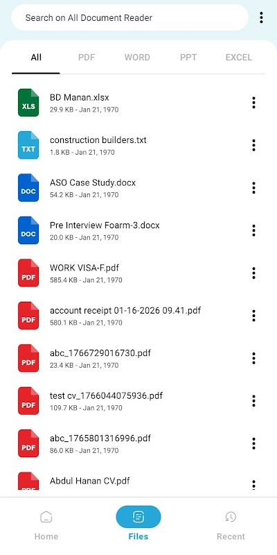 Fini les recherches interminables dans vos dossiers ! Cette application analyse automatiquement votre appareil et organise vos documents PDF, DOCX, XLSX, PPT et TXT grâce à une interface intuitive.