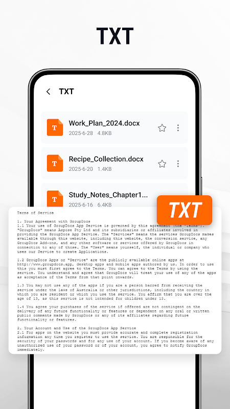 Ouvrez des documents en PDF, Image et TXT.