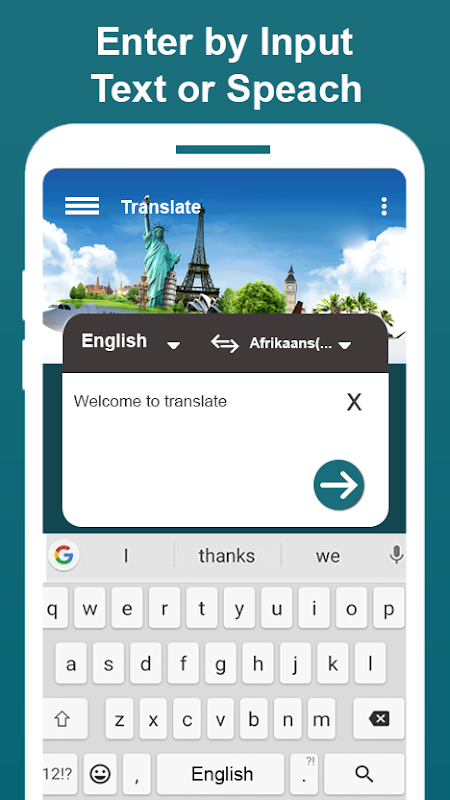 Voice Translator - All Language Translator est une application gratuite de traduction vocale pour Android. Une application de traduction vocale compacte et facile à utiliser.Voice Translator peut également être utilisé lorsque vous apprenez et comprenez un outil linguistique. C'est un travail comme un dictionnaire personnalisé. Votre voix sera traduite et enregistrée localement, utilisée dans un traducteur hors ligne. Traduction dans plusieurs langues (traduction simultanée dans de nombreuses langues). Toutes les langues de traduction traduisent vos mots avec une traduction vocale gratuite. Prenez une photo à partir de l'appareil photo et traduisez le texte sur la photo par le biais d'un traducteur d'appareil photo ou d'une application de traduction d'images ou de traducteur d'image. Voice Translator Master Parle de toutes les langues avec des mots d'apprentissage est fourni traducteur application libre avec la définition dans le traducteur hors ligne toutes les langues.Translator prend en charge la traduction vocale et texte dans plus de 60 langues. Utilisez-le tous les jours pour les affaires, les voyages et l'éducation.