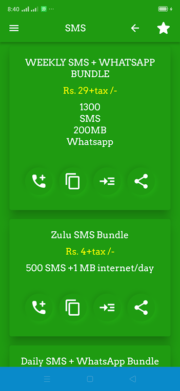 Tous les forfaits réseau fournissent des appels, SMS, Internet et d'autres forfaits avec des informations détaillées complètes. Cette application contient des packages de tous les principaux réseaux mobiles pakistanais disponibles tels que Jazz, Telenor, Ufone et Zong. Cette application fournit également des informations sur le haut débit PTCL, les appareils 3g / 4g et la télévision intelligente.