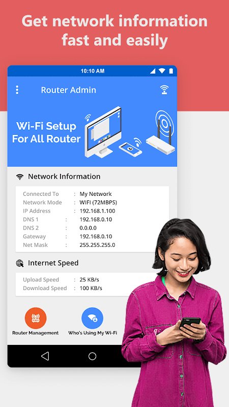All Router Setup admin & control app is a transparent and high-configuration app that displays several users required specifications like network information, internet speed, router management, your wifi users, router list surrounding you, etc. All Router Setup admin & control is a high-utility Android app that made operation, management and manual modification of wifi and router devices easy and effective!