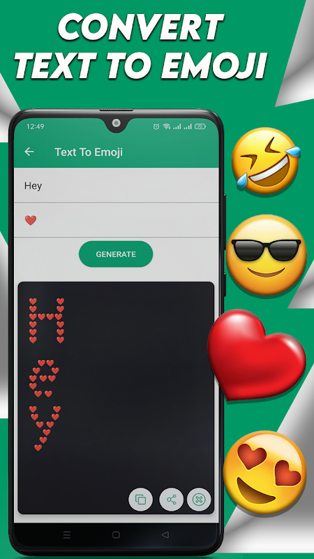 • Exprimez vos sentiments d'une manière différente, convertissez n'importe quel texte en emoji et partagez le copier/coller dans un message texte ou n'importe quel chat WA en utilisant l'économiseur d'état WhatsApp.