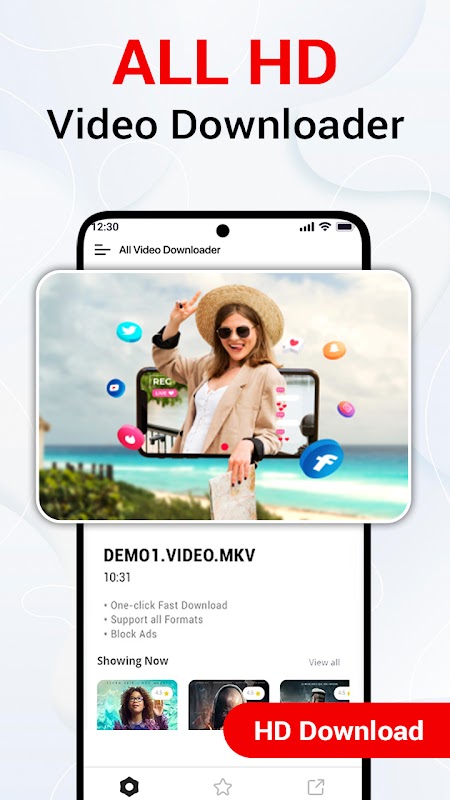Dans All Video Downloader pour télécharger rapidement des vidéos et des clips de réseaux sociaux à partir de réseaux sociaux et de sites vidéo populaires sur votre mobile.