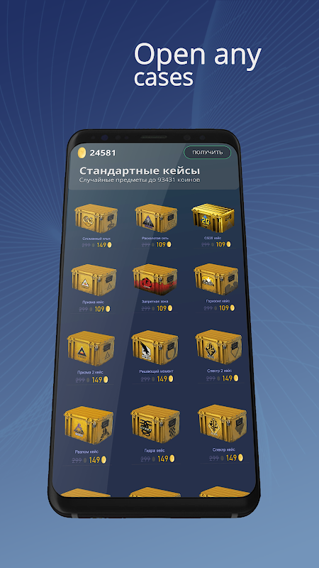 Welcome to AllCases! This is a new multiplayer cs go case in real time. Collect rare weapons, open chests, compete with other players! Don't wait any longer - choose a case and open it, and then bring your skins to your inventory! The application does not require your login and passwords. Download AllCases and try your luck right now!