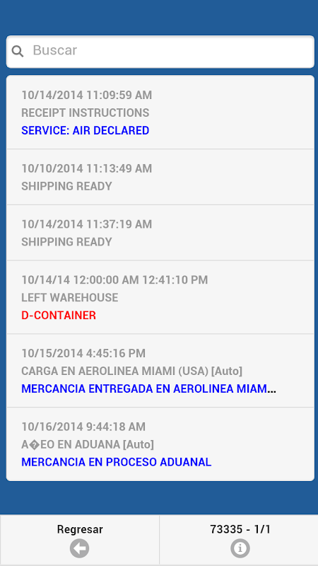 * Buscar información de Trackings por su número o usando la cámara de la unidad móvil.