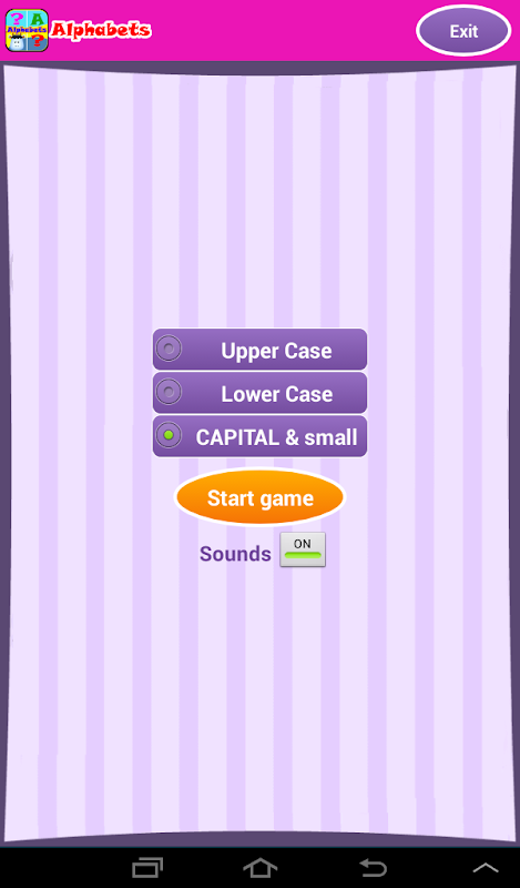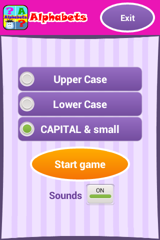 √ 3 Modes of difficulty Upper Case, Lower Case And a Mixed Mode