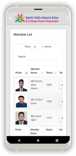 In this app, alumni association members can make payments and view all member's profiles. It’s very simple, with no ads, no fancy details, and just an app for the member of the Bashir Uddin Adarsha School and College Alumni Association.