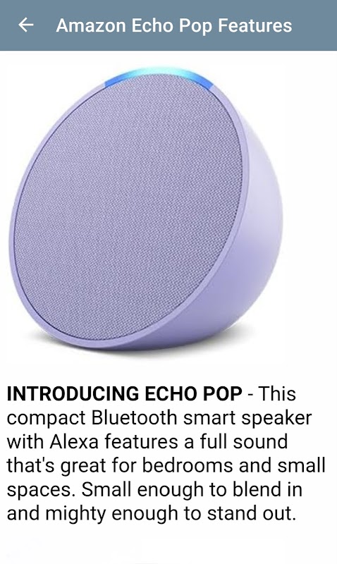 Dans le contenu de cette application, vous pouvez trouver des explications contenant les titres ci-dessus. L'application est un guide contenant des informations sur Amazon Echo Pop.