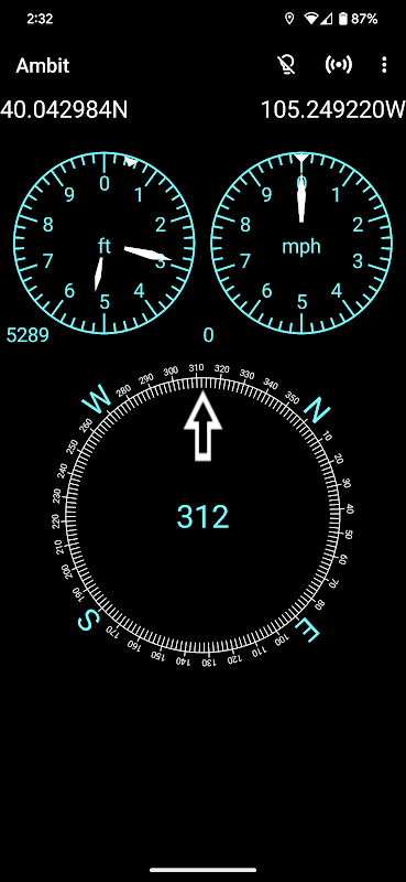Application simple qui présente 3 cadrans indiquant la vitesse actuelle, l'altitude actuelle et le cap actuel de la boussole.
