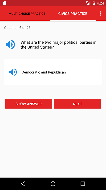 Pass your United States citizenship exam with the help of Citizenship Prep 2018. Practice interview questions regarding American history and customs. Practice in multiple choice mode, where you receive instant feedback on your performance, or answer questions before you see the correct answer. Find your local representatives and capital. Questions are up-to-date, and will be updated as necessary.