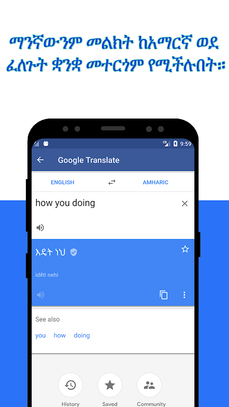 ☞ ማንኛውንም መልክት ከአማርኛ ወደ ፈለጉት ቋንቋ መተርጎም የሚችሉበት.