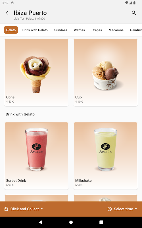 Commandez à l'avance via l'application Amorino en quelques clics. Avec notre application, vous pouvez passer une commande de retrait rapidement et facilement, où que vous soyez. Sélectionnez simplement vos articles, choisissez une heure de collecte qui vous convient et vous êtes prêt à partir !