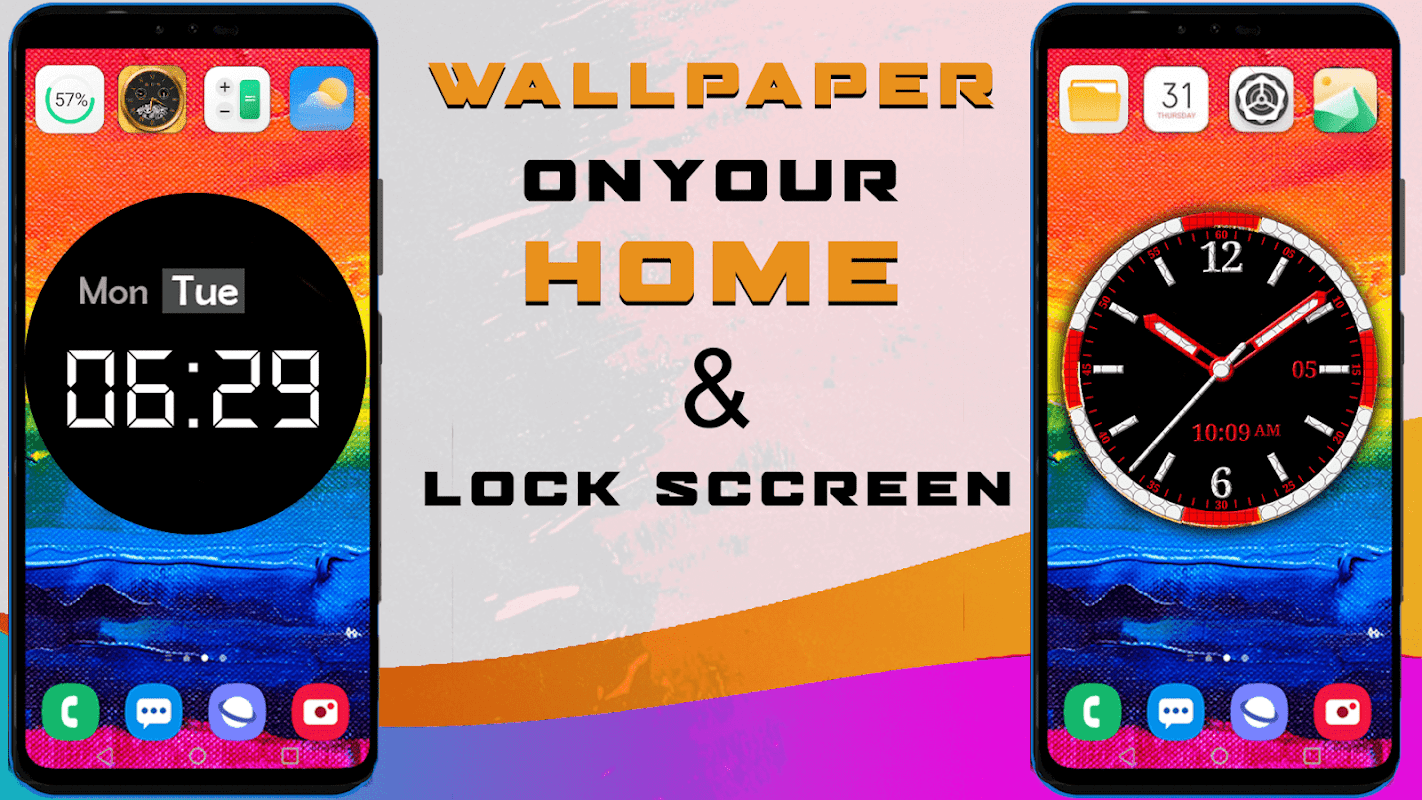 Pour ajouter une touche magique à l'écran de votre mobile, utilisez nos thèmes de fond d'écran élégants d'horloges analogiques et numériques avec des options personnalisables telles que la modification de l'arrière-plan, une collection d'horloges numériques et analogiques avec différents styles de police et le redimensionnement des horloges analogiques avec des thèmes noirs et colorés. Vous pouvez également modifier le format de la date et la taille du texte pour mieux s'adapter à l'écran de votre appareil mobile.