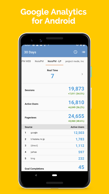 AnalyticsPM permet une vérification rapide des informations Google Analytics depuis votre Android.