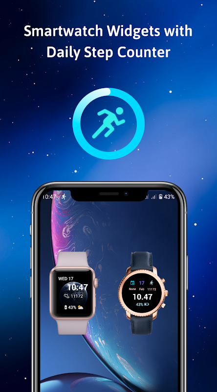 - Show current calendar, battery level and step counter on widget.