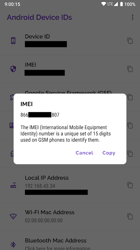 Application simple pour obtenir / copier vos identifiants uniques de votre appareil Android.