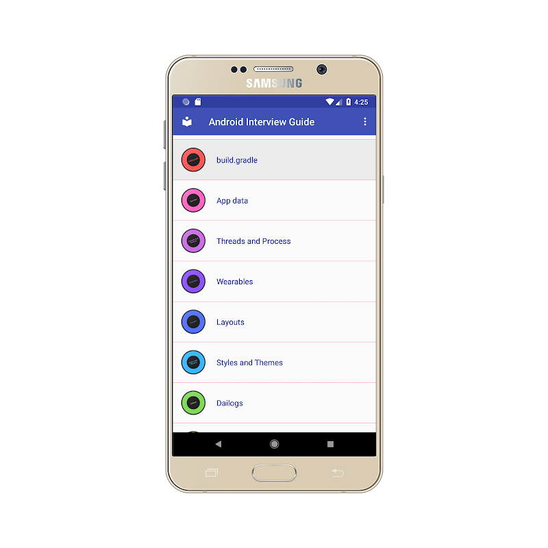 Android Interview Guide(AIG) has a collection of more than 300+ questions with answers asked in the interview for freshers and experienced (Programming, Scenario-Based, Fundamentals, Performance Tunning based Question and Answer). This App is intended to help Android Career Aspirants to prepare for the interview on Android-related technologies.
