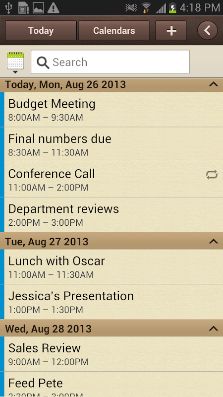 - Recurring calendar events