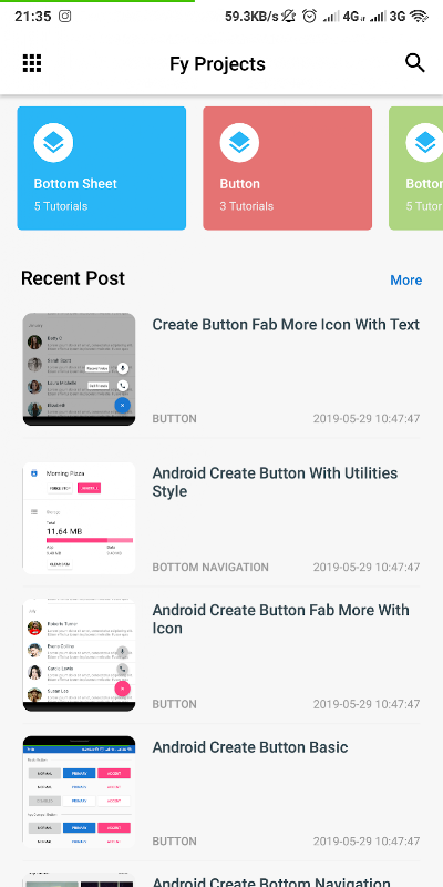 De nombreux tutoriels Android, vous pouvez télécharger un exemple d'apk et télécharger un exemple de projet, avec des vidéos de démonstration sur des tutoriels.