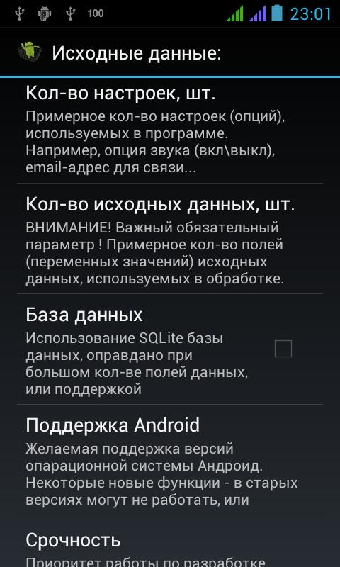 * Demandez un couple de paramètres numériques pour un calcul réaliste, dont les principaux - le nombre approximatif de données à traiter, le programme souhaité, par exemple, le nom de \ nom \ adresse \ images \ prix, etc. - En tant que client, vous devriez être assez précis pour penser les données d'origine et le résultat délivré par le programme. A partir de ce nombre dépend de la complexité des fonctions individuelles