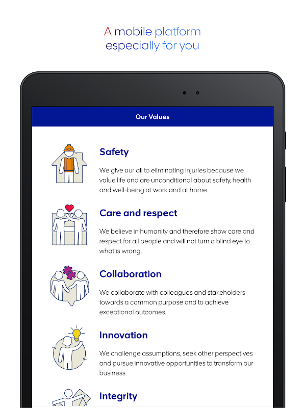 "L'application Anglo American Engage vous permet de rester en contact avec les informations qui vous tiennent à cœur, où que vous soyez.