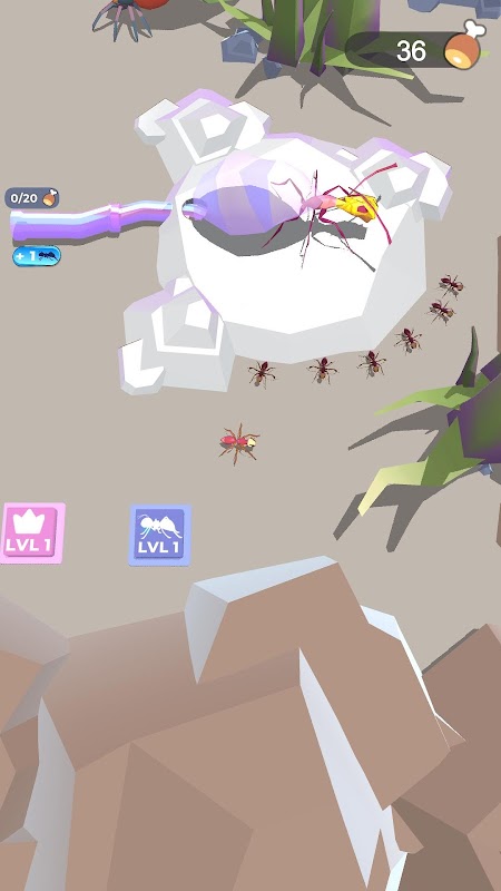 Construisez votre armée, développez la colonie. Explorez de nouveaux territoires. Trouvez de la nourriture et améliorez la reine. Défendez-vous contre les ennemis !