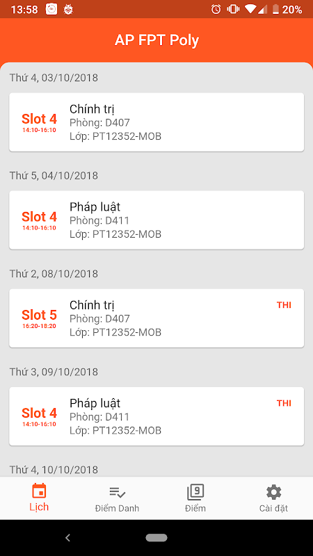 - Xem lịch thi