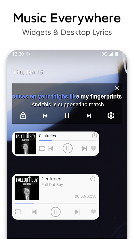 • Affichage des paroles flottantes et widgets pour l'écran d'accueil