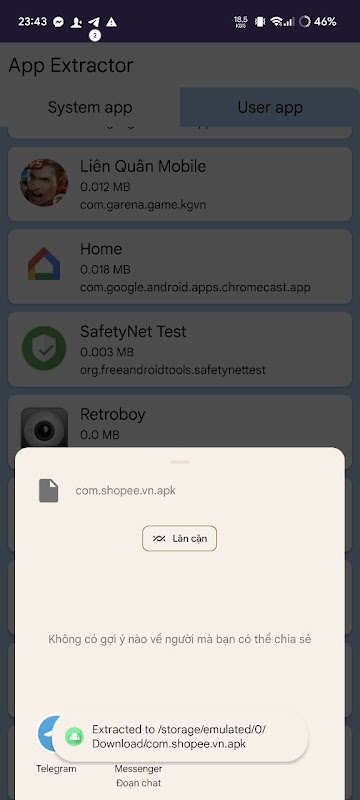 2. Stockez et partagez : après avoir extrait les fichiers APK, vous pouvez les stocker dans la mémoire de votre téléphone ou les partager par e-mail, messages ou autres applications de transfert de fichiers. Cela vous permet de transférer facilement des applications vers d'autres ou de les réinstaller après avoir réinitialisé votre téléphone sans avoir à les télécharger à nouveau depuis l'App Store.