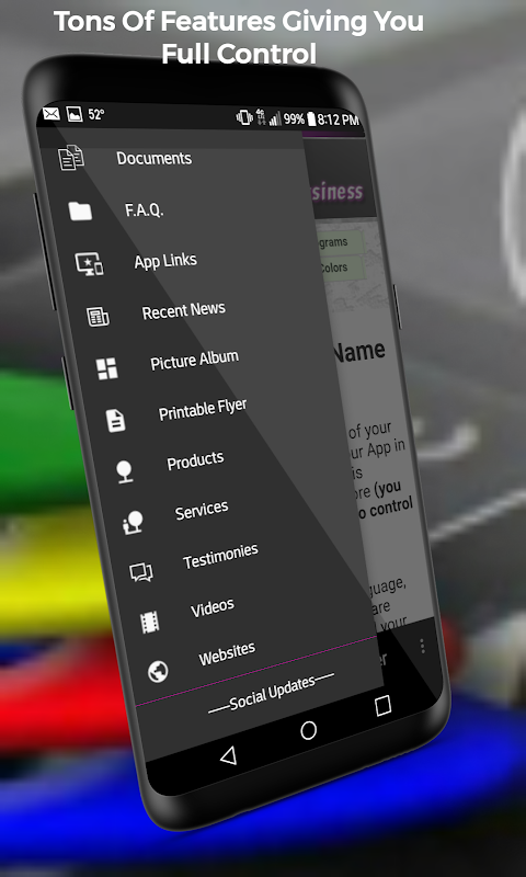 We are an App Builder whom made you an App Maker, embedding Tools to empower your Business with control over your App. This App Maker allows you to change the content in your App even after it is Published. If your prices change or other things change like you make a new Flyer, Document, Picture, Video ect. with the services of this App Builder you can update your Business App right from your phone even while out in the field and the changes go live immediately across all your customers' devices.