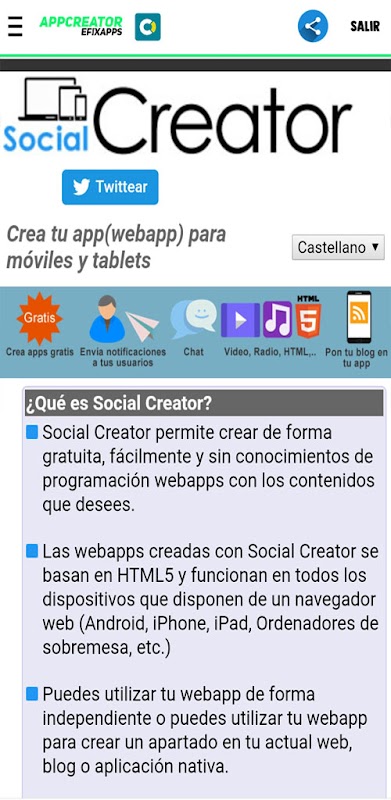 AppCreator24 Mobile te permite crear aplicaciones de forma gratuita, fácilmente y sin conocimientos de programación para móviles y tablets Android.