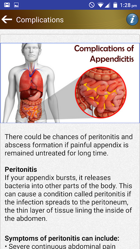 Annexe Diet Foods Aide application Conseils est une application gratuite contient des informations sur l'appendicite provoque des symptômes de traitement et des conseils diététiques et d'aide. L'appendicite est une inflammation de l'appendice et pourrait être aiguë ou chronique. Non traitée, l'appendicite peut causer l'appendicite à éclater et causer une infection. Cela peut être grave et parfois mortelle. Si vous avez une appendicite, vous pouvez rencontrer un ou plusieurs des symptômes suivants:
