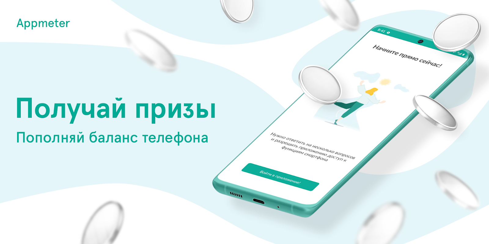 Заходи в приложение и получай баллы каждый день! Все, что нужно, - убедиться, что приложение Appmeter включено и работает в фоновом режиме не менее 8 часов в день.