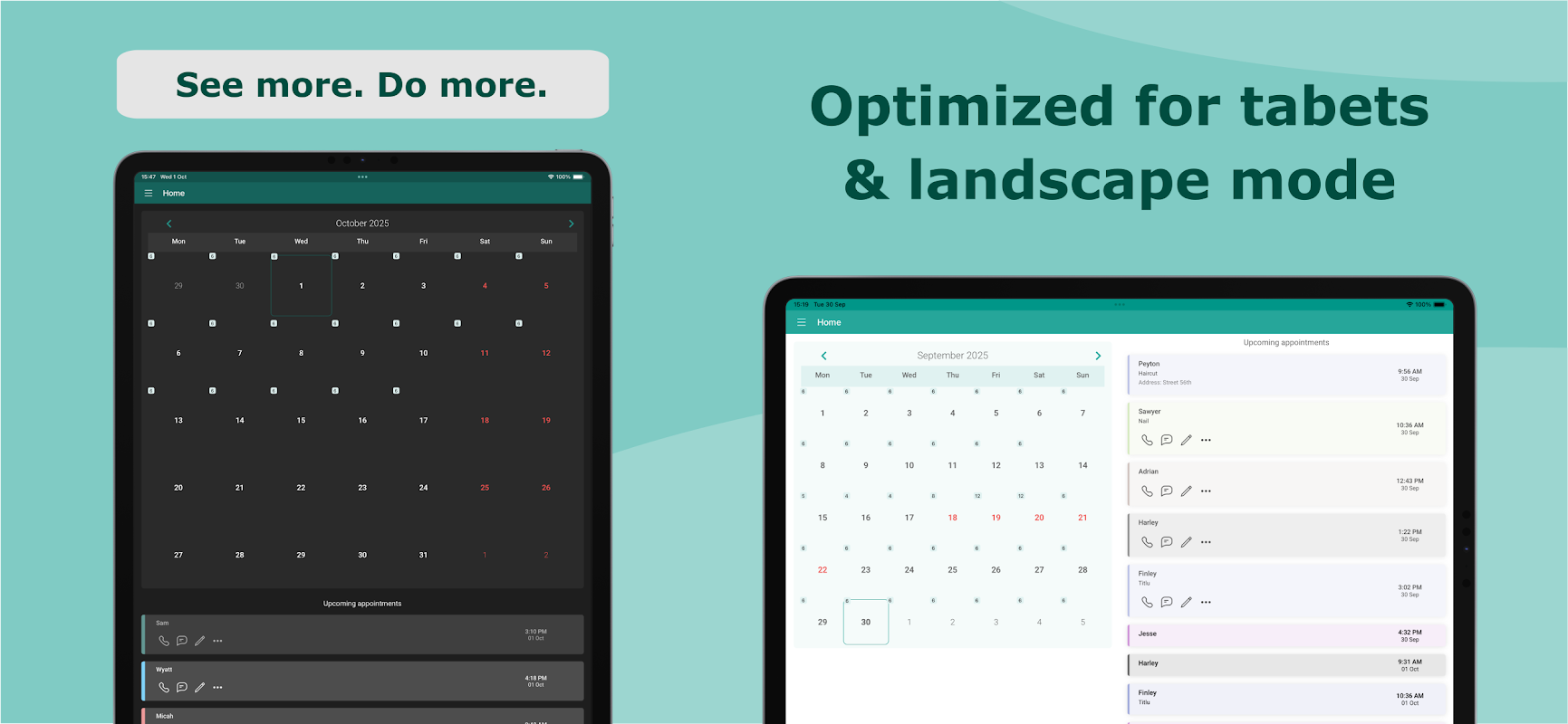 Organisez vos rendez-vous clients sans effort et gérez votre planning de travail grâce à une application intelligente. Gardez le contrôle, gagnez du temps, concentrez-vous sur vos clients et développez votre activité.
