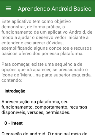 Com uma interface amigável e uma introdução ao mundo mobile Android, este aplicativo demonstra de maneira simples e direta as principais funcionalidades e recursos os quais você precisa conhecer para iniciar o desenvolvimento de um app Android.