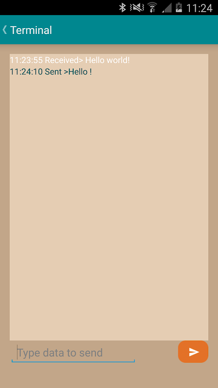 Cet outil est un terminal classique, qui fonctionne cependant que via la fonction serial.println() du coté arduino pour l'envoi de données au téléphone. Les données affichées sur le téléphone sont accompagnée d'un horodatage.