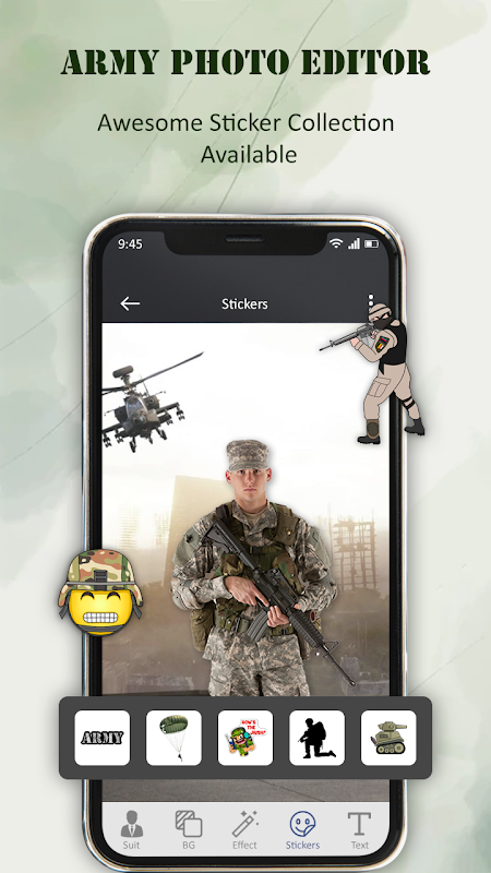 Army Suit Maker divertissez-vous avec votre famille et vos amis par l'éditeur de costumes de l'armée