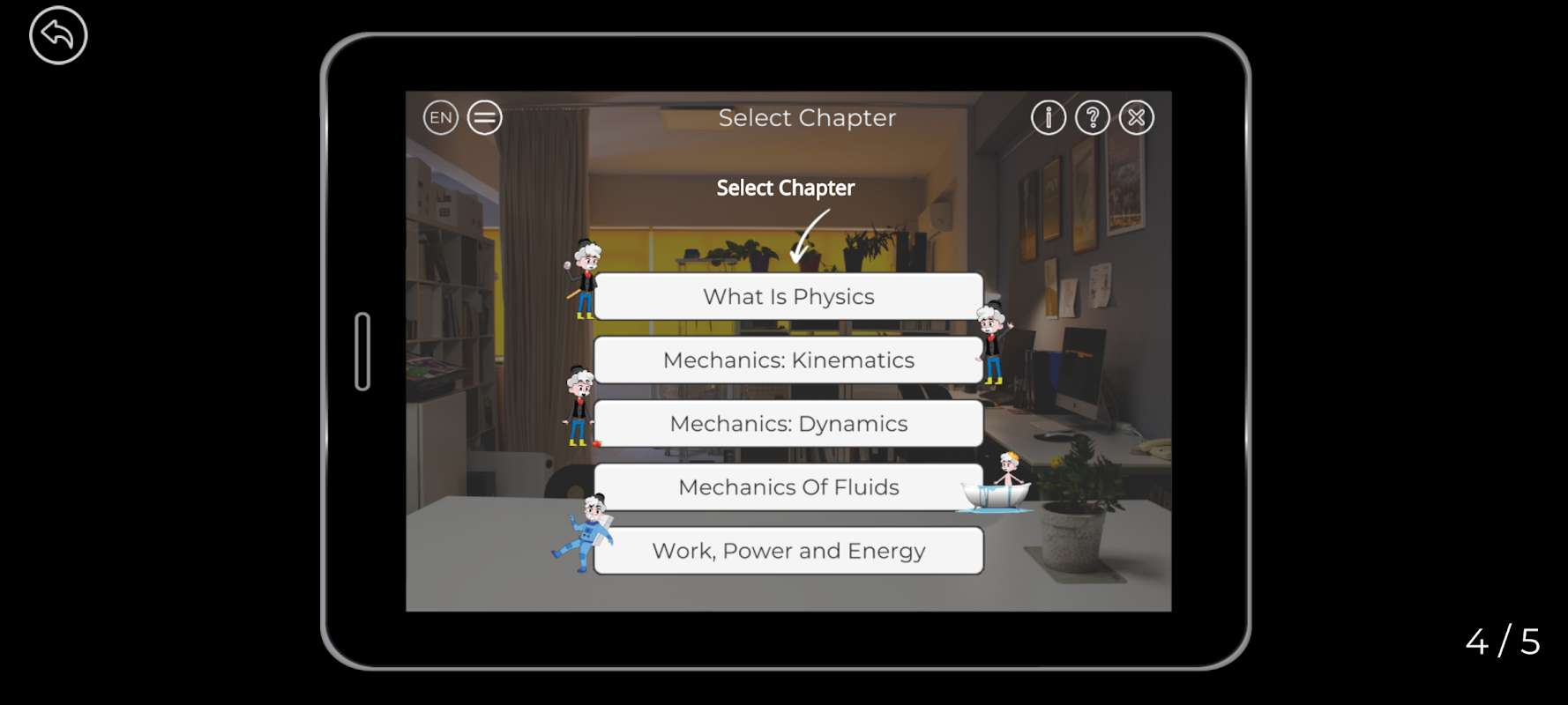 En racontant l'histoire de jalons historiques importants en physique, l'outil placera l'étudiant sur une route d'exploration, de la physique à travers le temps et des événements significatifs, avec une opportunité de tester et d'expérimenter de manière interactive ce qui est présenté.