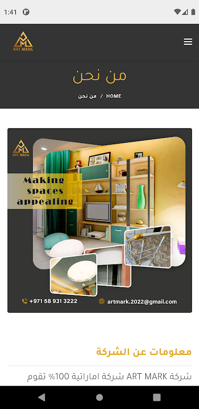 شركة ART MARK شركة اماراتية 100% تقوم بتصميمات عالمية الالومنيوم والزجاج ويشمل ذلك النوافذ – الدرج – كبائن الاستحمام وفقا للابعاد – أبواب الشبابيك الالومنيوم نقدم خدماتنا للشركات و البنوك والمشروعات العقارية بمواصفات قياسية بأفكار جديدة مخصصة لتلبى جميع احتياجاتك و تناسب مساحتك , بدقة عالية و الجودة في التصميم و التنفيذ , كما نقدم اعمال التصميم و التنفيذ للديكور الداخلي للمنازل و الفنادق و المكاتب و جميع المؤسسات.