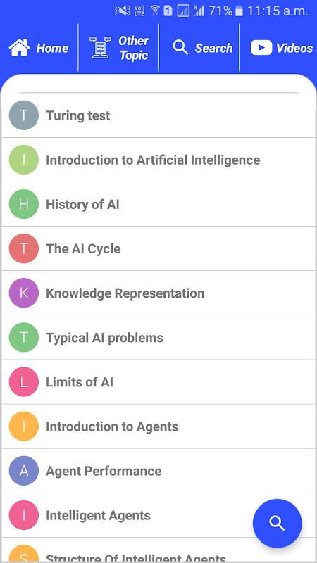 L'application est un guide complet et gratuit de l'intelligence artificielle avec des diagrammes et des graphiques. Il fait partie de la science informatique ou d'un logiciel d'éducation d'ingénierie qui apporte des sujets importants, des notes, des nouvelles et blog sur le sujet. L'application sert de guide de référence rapide sur ce génie sujet.
