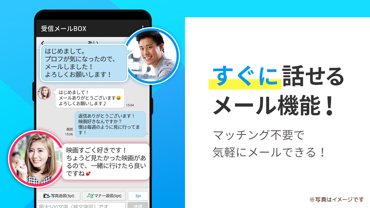 ・ Puisqu'il est exploité conformément à la loi sur la réglementation des sites de rencontres, vous ne pouvez pas lire les e-mails ou envoyer des e-mails en texte libre avant que la confirmation de l'âge ne soit terminée.