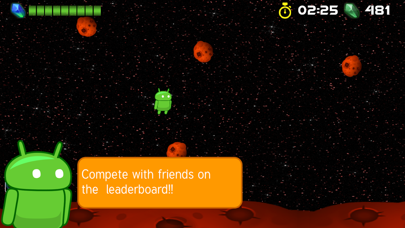 Asteroid Evasion is a fun mobile game for Android phones and tablets. It features an easy touch control to guide Andy through an asteroid field. Earn coins and buy powerups to help Andy complete the levels. Best of all, it's completely free!