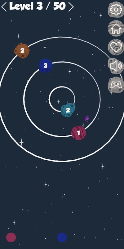 - When all asteroids are destroyed,level is completed.But be careful and patient,you have limited color ball.