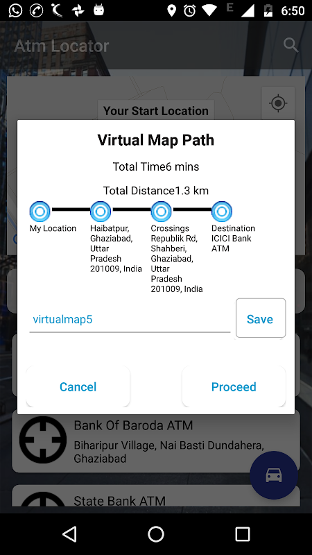 6 - techniques ATM de découverte et de la Banque de positionnement sont faciles sur l'approche hors ligne avec la carte virtuelle enregistrée et d'obtenir la véritable mise à jour de temps avec connectivité réseau sur les informations de chemin.