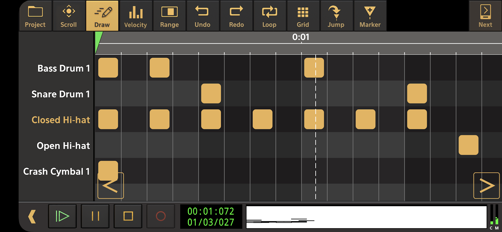 - Éditeur de batterie avec triolets pour des rythmes précis.
