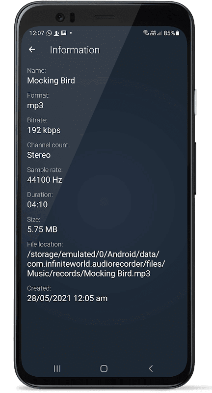 Informations Audio Recorder and Player Free APK