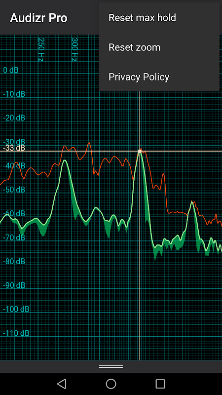 analyseur de spectre précision audio en temps réel pour les professionnels et les amateurs de son sérieux. L'analyse spectrale avec Audizr Pro révèle des détails remarquables dans son capturé à partir d'un microphone. Surveiller le contenu de fréquence sonore de vos moniteurs de système de sonorisation ou en studio avec une plus grande précision que l'oreille humaine ne peut jamais atteindre. Zoom sans effort sur des détails intéressants grâce à notre interface facile à utiliser utilisateur tactile et ajuster votre équipement à la perfection.