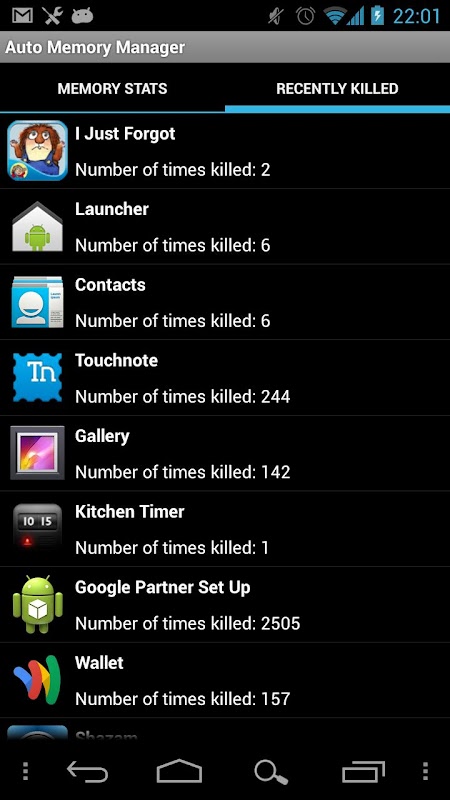 * How many times each app has been killed.